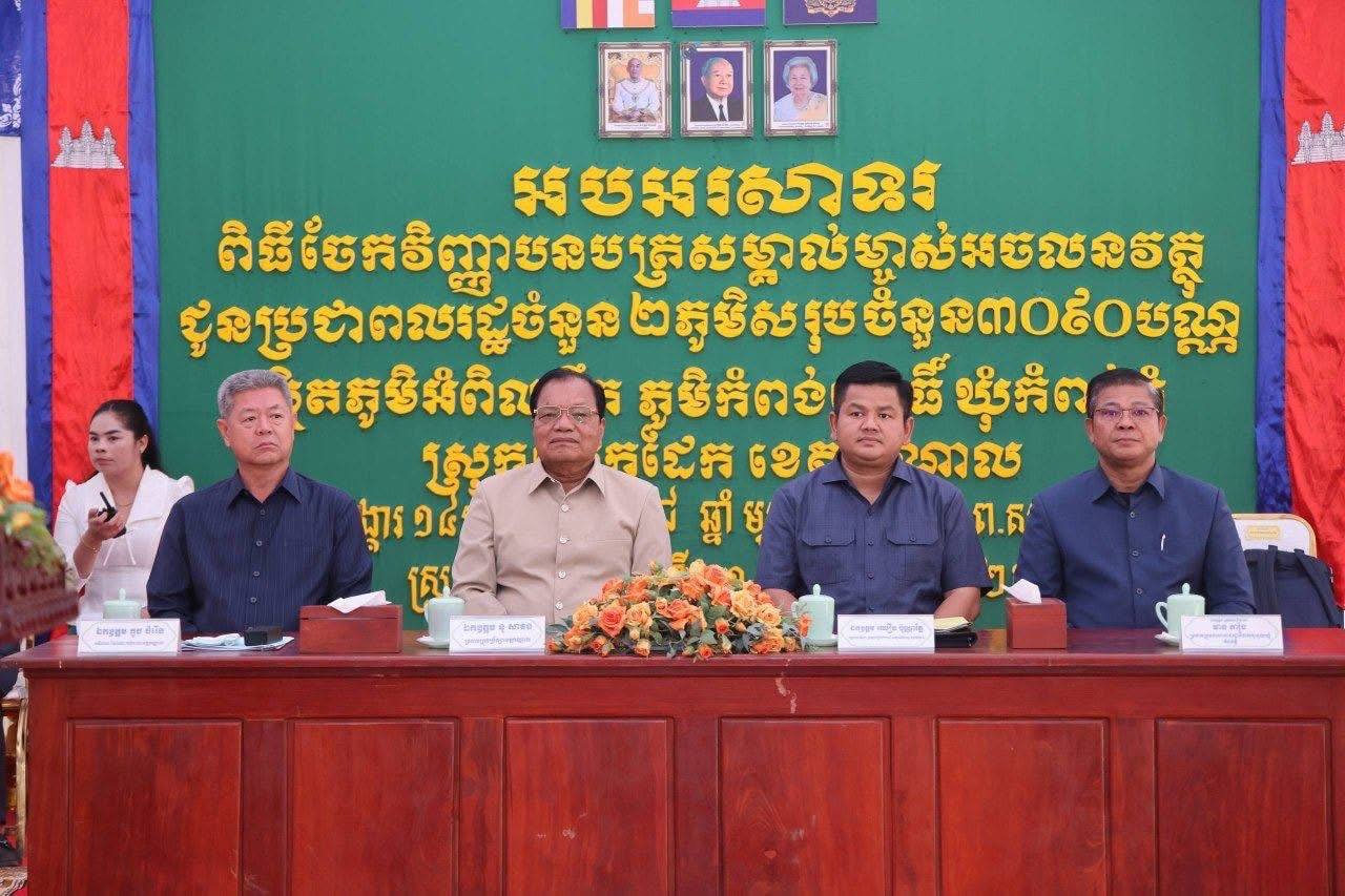 វិញ្ញាបនបត្រសម្គាល់ម្ចាស់អចលនវត្ថុចំនួន ៣,០៩០ បណ្ណ ត្រូវបានប្រគល់ជូនប្រជាពលរដ្ឋក្នុងភូមិអំពិលទឹក និងភូមិកំពង់ពោធិ៍ ឃុំកំពង់ភ្នំ ស្រុកលើកដែក ខេត្តកណ្ដាល