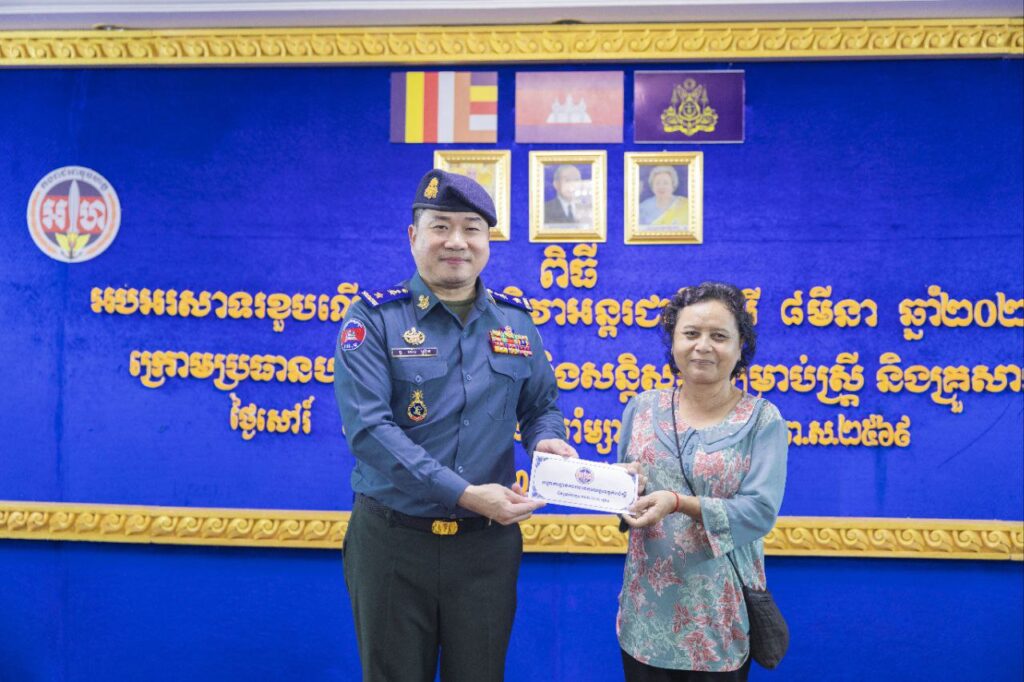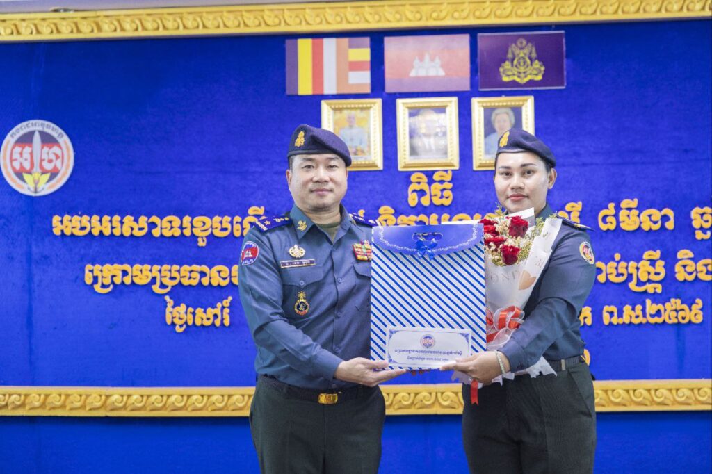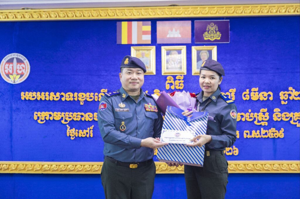 ជាចុងក្រោយ លោកឧត្តមសេនីយ៍ត្រី ម៉េង ស្រ៊ុន ក៏បានផ្តល់កិត្តិយសប្រគល់នូវវត្ថុអនុស្សាវរីយ៍និងបាច់ផ្កាជូនដល់អាវុធហត្ថនារីដើម្បីជាការលើកទឹកចិត្តនិងជានិមិត្តរូបនៃសេចក្តីស្រឡាញ់និងការផ្តល់តម្លៃដល់ស្ត្រី ព្រមទាំងបានឧបត្ថម្ភដល់អាវុធហត្ថនារីចំនួន០៤នាក់ ដោយក្នុងម្នាក់ទទួលបាននូវ ថវិកាចំនួន ១០០,០០០រៀល រួមទាំងសម្ភារៈមួយចំនួនទៀតមានដូចជា ទឹកសុទ្ធ ៥កេស,ទឹកផ្លែឈើ +ភេសជ្ជៈ ៥កេស និងមី ៥កេសថែមទៀតផង៕